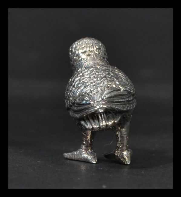 A sterling silver figurine of a water bird with stone eyes. Weighs 10.5 grams.