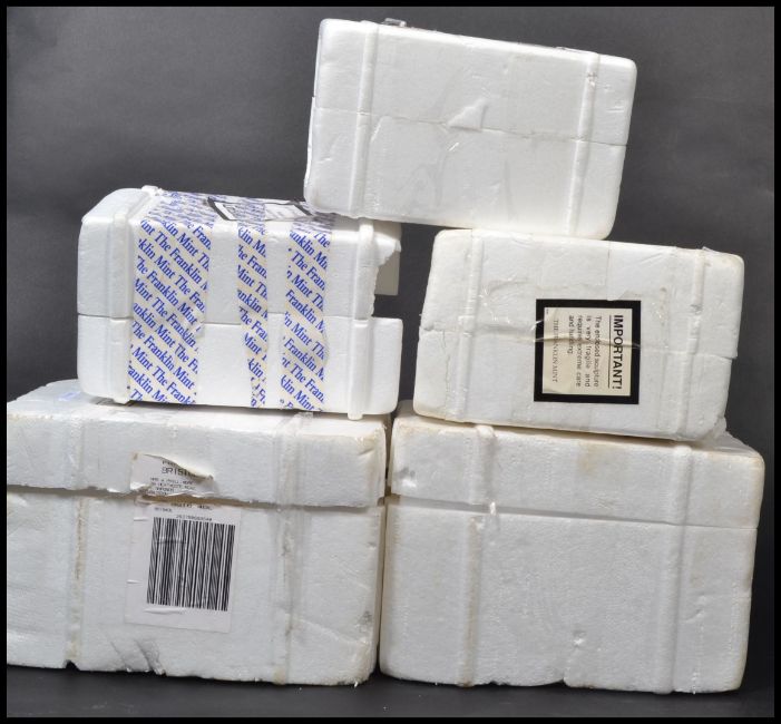 A set of 5 Franklin Mint figurines of The Beatles, each from a featured album artwork. Each figure being under a glass dome