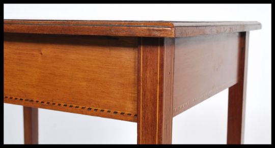 An early 20th century Edwardian  mahogany inlaid occasional / side / lamp  table raised on tapering square legs with inlaid borders to legs and top. Measures 75cm x 61cm x 45cm.