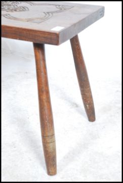 A 20th century carved oak side table with Celtic knot design raised on tapering legg by Ben Setter of Totnes, stamped to the side Ben Setter Totnes. Measures: 44cm high x 61cm wide x 35cm deep.