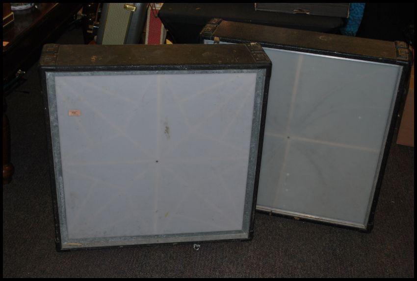 A large pair of vintage retro DJ light boxes / diffusers  in black vinyl surrounds.
