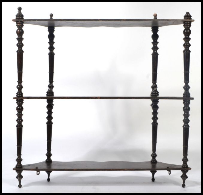 A 19th century Coromandel wood etagere whatnot of shaped form with multiple shelves having barley twist supports. Measures 66 cm x 65 cm x 16 cm.