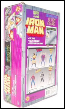 A Toy Biz made Marvel Comics Iron Man Deluxe Edition Tony Stark Techno Suit. Factory sealed, within the original box.