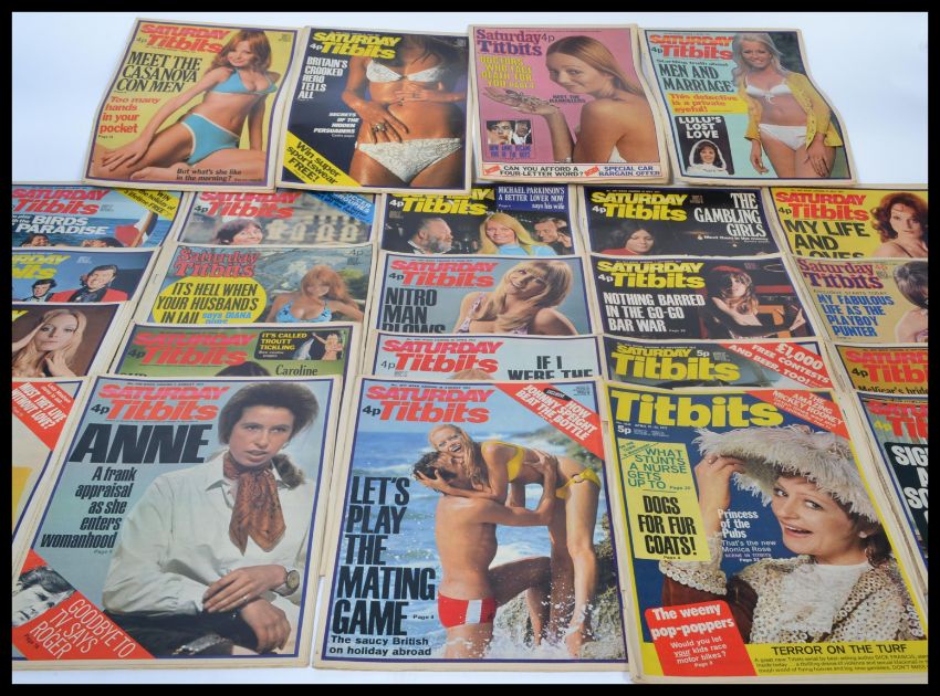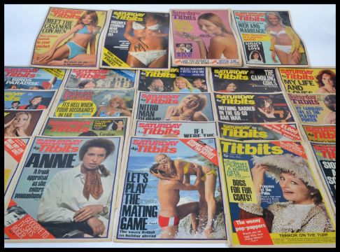 A collection of retro gentleman's Saturday Titbits magazines reading material dating from 1971. Measures 31 cm high.