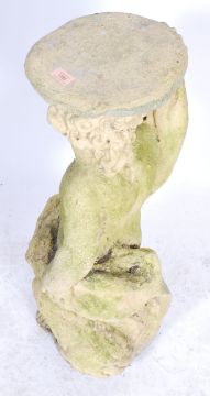 A large 20th century antique style reconstituted stone garden ornament plinth stand in the form of a standing cherub / putti