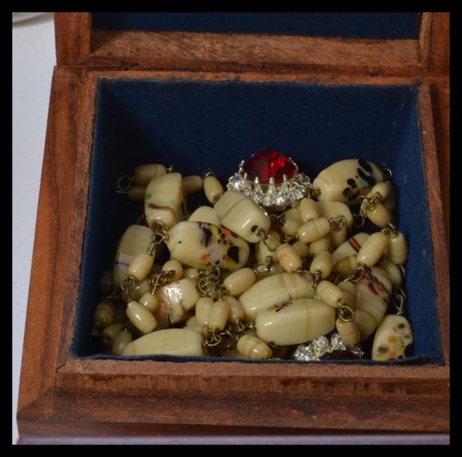 A collection of vintage and retro 20th century costume jewellery to include beaded necklaces, earrings, brooches etc please refer to images. Measures 13 cm high and 47 cm wide and 25 cm deep.