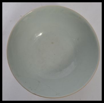 An 18th century Chinese porcelain footed bowl hand painted in enamels five colour decoration of finger lemons , leaves and pomegranates. Blue character marks to base. Measures 8 cm high and 17 cm diameter.