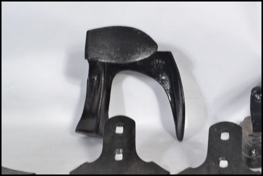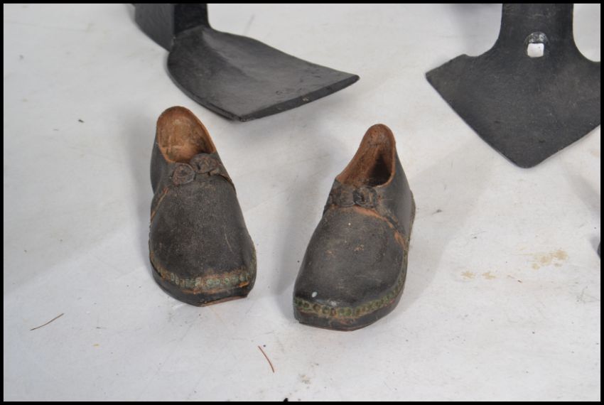 A collection of items to include a vintage coffee grinder, shoe last, axe head, clogs etc please refer to images.
