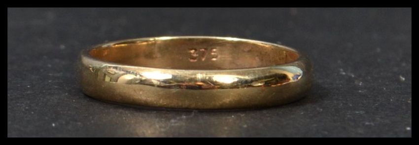 A 9ct gold ladies band ring of simple form being stamped 375 to the inner shank. Weight 2.7g