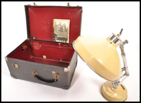 A good mid century vintage enamel and polished stainless steel heat lamp by Heala complete in the original carry case with instruction manual