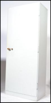 A mid century war time issue GR VI believed Military issued metal cabinet with cipher label to inside Of upright form with full length door having shelved interior, bronze handle with lock and 2 keys. 152x61x40cm.