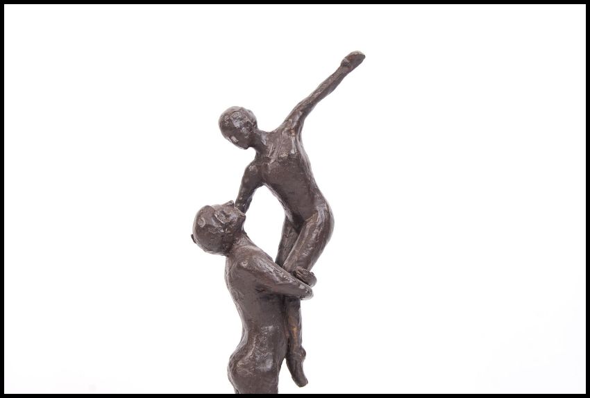 A vintage 20th century bronze statue figurine group of a dancing couple raised on a circular base. 44cm.