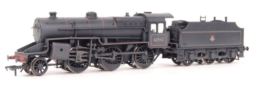 A Bachmann model rail 00 gauge railway trainset locomotive 32-179 BR Early Emblem loco 42942 - Weathered. With tender. Unboxed, mint.  Note: from an incredible large private collection of 00 gauge model rail locomotives. All locomotives were only ever displayed, never run. They were purchased new, removed from their boxes and displayed in wall mountable cabinets. As such, condition on all is 'as new' (whether boxed or not). Buyers are reminded for the need to satisfy themselves as to condition of individual lots prior to bidding - irrespective of description - as condition on some, may vary. All models are generally mint. An incredible collection.