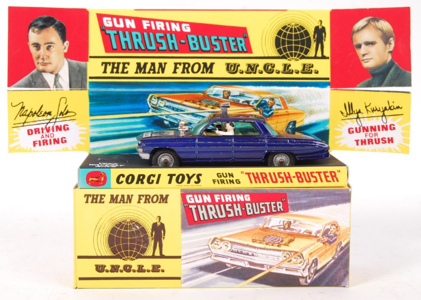 A original vintage Corgi ' Man From U.N.C.L.E ' 497 diecast model vehicle, within reproduction presentation box. Some paint chips to vehicle.