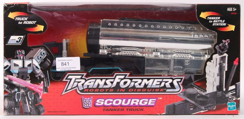 A Hasbro made c2001 ' Transformers : Robots In Disguise ' action figure playset ' Scourge Tanker Truck '. Appears mint, within the original display box.
