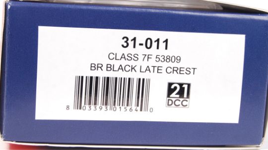 A good Bachmann Branch Line 00 gauge railway trainset locomotive 31-011 Class 7F 53809 BR Black Late Crest. DCC ready. Within the original box.  Note: from an incredible large private collection of 00 gauge model rail locomotives. All locomotives were only ever displayed, never run. They were purchased new, removed from their boxes and displayed in wall mountable cabinets. As such, condition on all is 'as new' (whether boxed or not). Buyers are reminded for the need to satisfy themselves as to condition of individual lots prior to bidding - irrespective of description - as condition on some, may vary. All models are generally mint. An incredible collection.