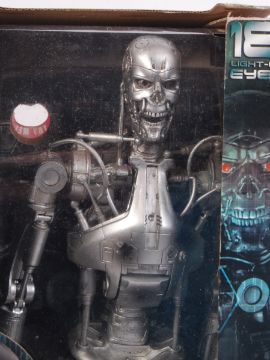 A fantastic NECA made Reel Toys ' Terminator 2 ' ' Endoskeleton ' 18" action figure ' With Light Up Eyes .' Contents appear unused as still wired to inner card. Within the original box, sealed (unsure if factory sealed). Large scale figure.