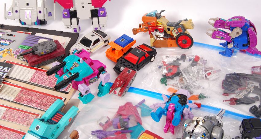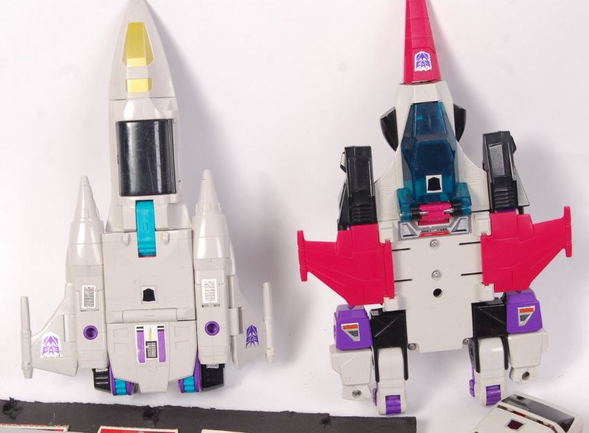 A superb large collection of vintage 1980's Hasbro ' Transformers ' action figures. Each unboxed, but many with accessories and related items. Including a child's book of ' Tech Specs ' removed from the rear of the original boxes. To include; Jetfire, Tailgate, Pipes, Scoop, Huffer, and many others. Some presumed complete. Also included is a vintage ' Trans Formers Universe ' guide book. Great collection.