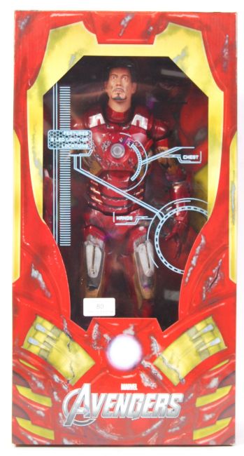 A superb NECA Reel Toys made 1/4" scale 18" large scale action figure of Iron Man from ' The Avengers .' Superb mint condition, remaining factory sealed and unused. Incredibly well detailed figure. Ex-shop-stock.