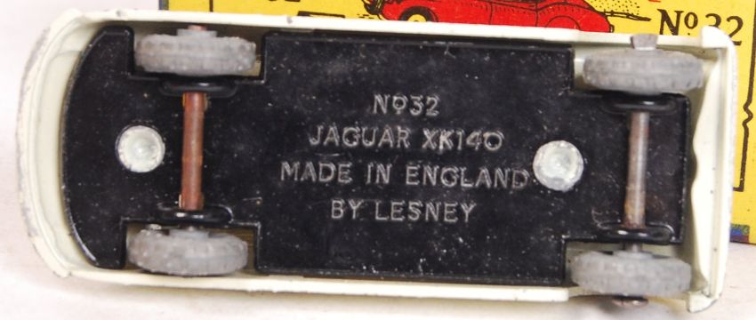 An original vintage rare Matchbox Moko Lesney boxed diecast model No. 32 ' Jaguar XK140 '. White with grey metal wheels. Generally good, within the correct original box. Rare.