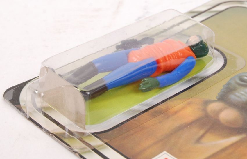 A superb original vintage Palitoy made carded Star Wars action figure ' Walrus Man '. Rare 20 back Palitoy card variation. Card back in superb mint condition, completely flat with no folds or veins. Bubble with some small corner lift to lower right and inner upper right, but completely sealed and unopened. Small dent to upper right bubble corner, with no splitting. Weapon still present. Very rare Star Wars action figure from the second wave of figures released in 1978.