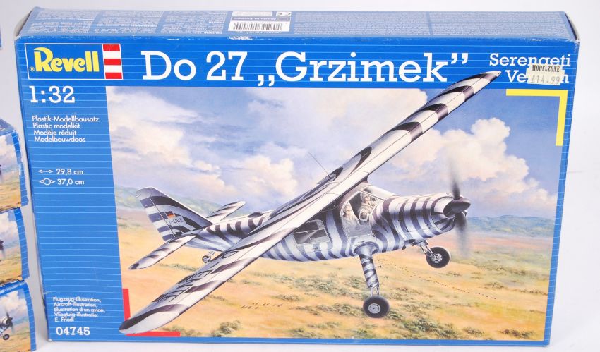A set of 6x ' shop fresh ' unused Revell plastic model aeroplane / aircraft kits. All being of the 1:32 scale model No. 04745 ' Do.27 Grzimek ' plane. All factory sealed, and as new.
