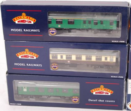 A collection of 6x Bachmann Branch Line 00 gauge model rail railway trainset rolling stock carriages - all within the original boxes. Comprising; 34-502 , 39-128A , 34-226B , 39-029B , 39-290 , and 39-228A . All appear mint, boxed. Note: from an incredible large private collection of 00 gauge model rail locomotives. All locomotives were only ever displayed, never run. They were purchased new, removed from their boxes and displayed in wall mountable cabinets. As such, condition on all is 'as new' (whether boxed or not). Buyers are reminded for the need to satisfy themselves as to condition of individual lots prior to bidding - irrespective of description - as condition on some, may vary. All models are generally mint. An incredible collection.