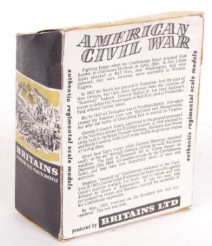 A rare vintage Britains made ' American Civil War ' plastic model figure / soldier. Figure appears within the original Britains display box. Mounted Civil War troop on horse. Rare.