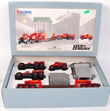 A Corgi Heavy Haulage diecast model set No. 31009 ' Wynns - Diamond T Ballast 24 Wheel Girder Trailer With Boiler Load and Scammell Highwayman Ballast '. Contents appear mint, complete with certificate and Corgi dog model. Within original box.