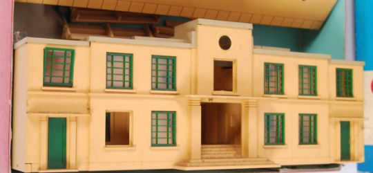 A rare original vintage Hornby Dublo polystyrene plastic model kit 00 gauge railway trainset set 5083 ' Terminal or Through Station Composite Kit .' Set appears largely complete (the main Terminal structure is present) but small details have not been checked. One of the rarer Dublo trackside sets. Appears within its original box, which although a little grubby, is largely very good.