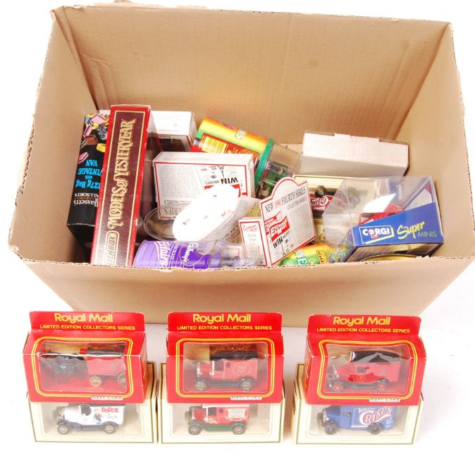 A collection of 25x Lledo Days Gone, Matchbox & other diecast model vehicles to include; Royal Mail, The Exchange & Mart, Bassett's, Cadbury Chocolate Eclair's, Corgi Super Minis, Models of Yesterday & others. All within their original boxes.