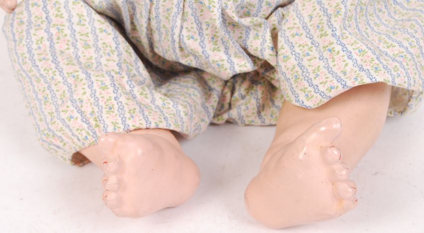 An antique late 19th / early 20th century bisque headed JDK Kestner doll No. 257. The bisque head stamped ' Made In Germany, JDK , 257 .' The doll featuring beautiful glass eyes, original hair (detached) and the composition torso still retaining all fingers and toes - with hand painted details. Bisque head with no cracks or damage present, in original condition. A very good example of an early JDK bisque headed doll. Measures approx; 67cm tall.