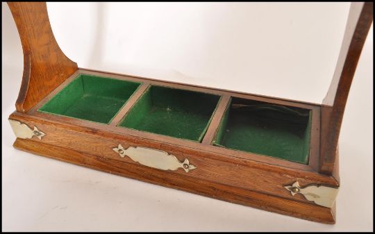 A 19th century Victorian triple decanter oak Tantalus raised on a plinth base with silver plated mounts and handle. Complete with three faceted glass decanters with decanter labels reading Sherry Whisky and Port.
