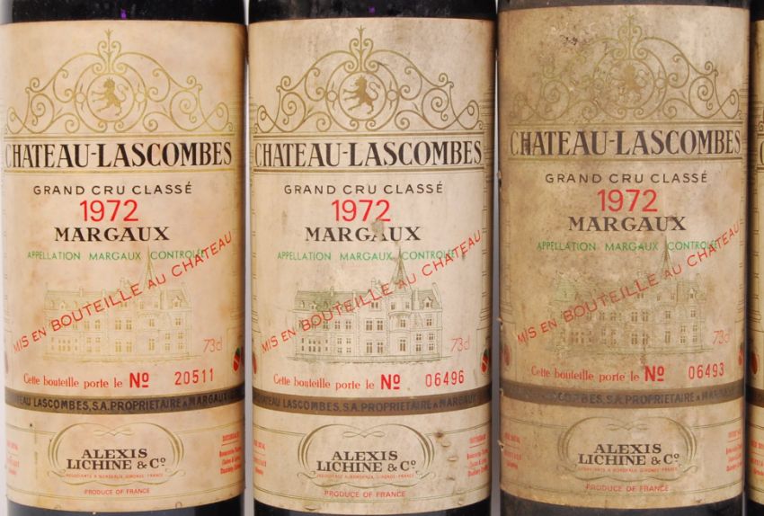 A quantity of 6x bottles of vintage 1972 French Chateau Lascombes 2er Grand Cru red wine from the Margaux region. 2x label on bottles worn. Bottle size 750ml. All bottles sealed.