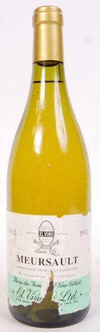 A bottle of vintage 1992 French El Vino Meursault white wine. Bottle size 750ml. Bottle sealed.