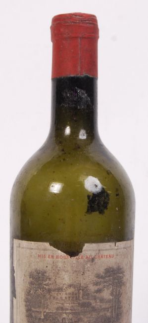A rare bottle of vintage 1906 French Baron de Rothschild, Chateau Lafite red wine from the Pauilac region. Very low shoulder with slightly torn label. Bottle size 750ml. Bottle sealed.
