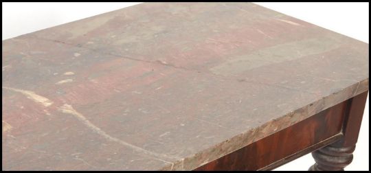 A 19th century Victorian mahogany and rouge marble top console table. The mahogany base raised on turned and tapering fluted legs having a fitted frieze with stunning original heavy thick rouge marble top above. Measures 79cms high x 107cms wide x 39cms deep