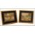 A pair of 19th century hand painted silk and embroidery miniature landscape paintings depicting flower borders , one having an arch. Set to ornate gilt frames with black and gilt slips. Easel backed. Measures 8cms by 11cms.