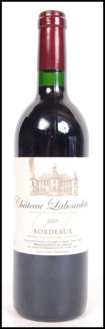 A bottle of vintage 2009 French Château Labourdette red wine from the Bordeaux region. Bottle size 750ml. Bottle sealed.