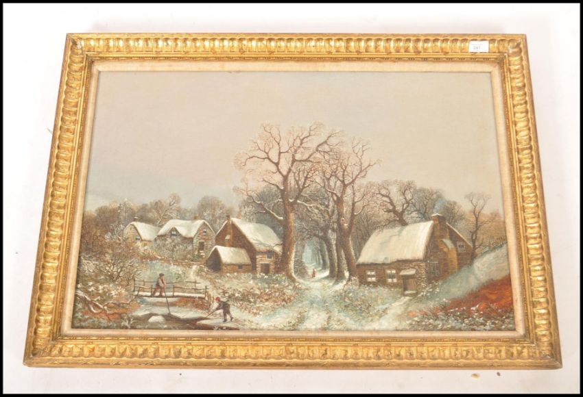Herbert Newey 1878. An English School winter scene oil on canvas painting being signed and dated by the artist to corner. Gilt framed. Measures 63cms x 88cms
