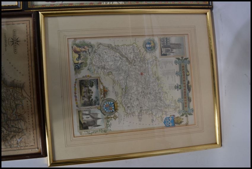 A collection of four framed and glazed 19th and 20th century maps to include a map of Europe drawn and engraved by J Rapkin, South Wales by J Cary, Gloucestershire and Part of Devonshire.