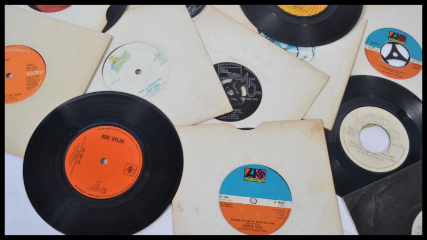 Vinyl records - A collection of vinyl 7" 45rpm  records featuring several artists to include Detroit Spinners, Linda Lewis, Shirley And Company, Otis Redding, Stevie Wonder, The Meters, Billy Preston, Stylistics, Al Green, Bob Dylan, Ray Charles and many many more artists.