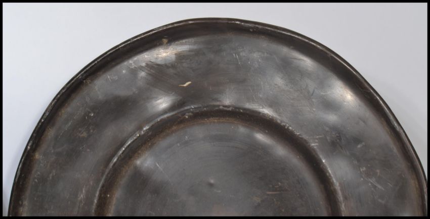 A pair of 18th century lead / pewter dinner plates, the plates of usual form with no noticeable touch marks. Measures 41 cm diameter.