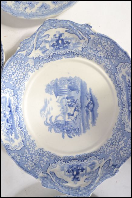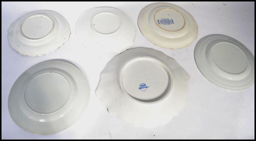 A collection of six ceramic 19th century cabinet plates to include Imari style, blue and white examples to include a Victorian copy of a plate after William Adams. Please refer to images.