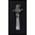 A sterling silver babies rattle in the form of a lady with mother of pearl handle.