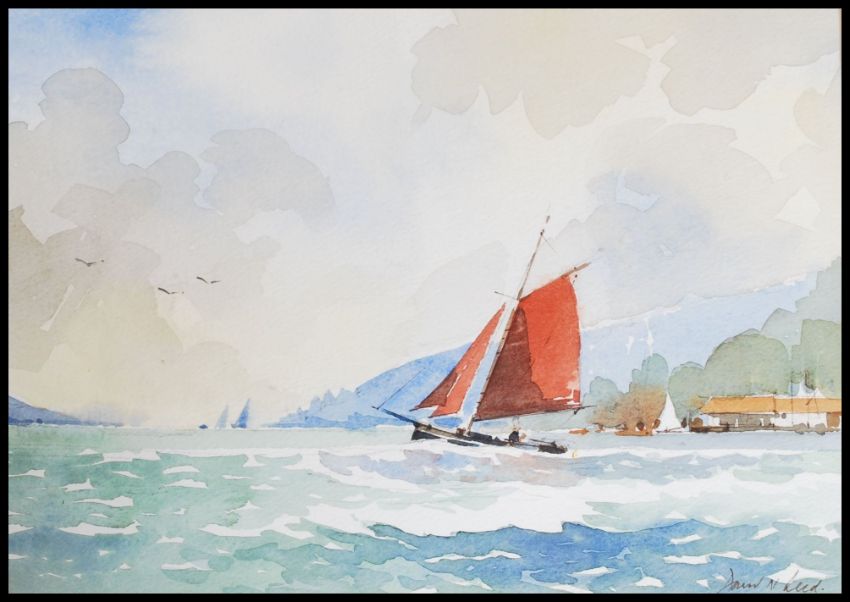 David N. Reed ( Bristol Savages)  2 Watercolour paintings being, signed, framed and glazed to include beech scene and sailing ship scene. Both signed by the artist