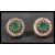 A pair of sterling silver and CZ earrings of roundel form having central green stones. Complete in jewellery presentation box.