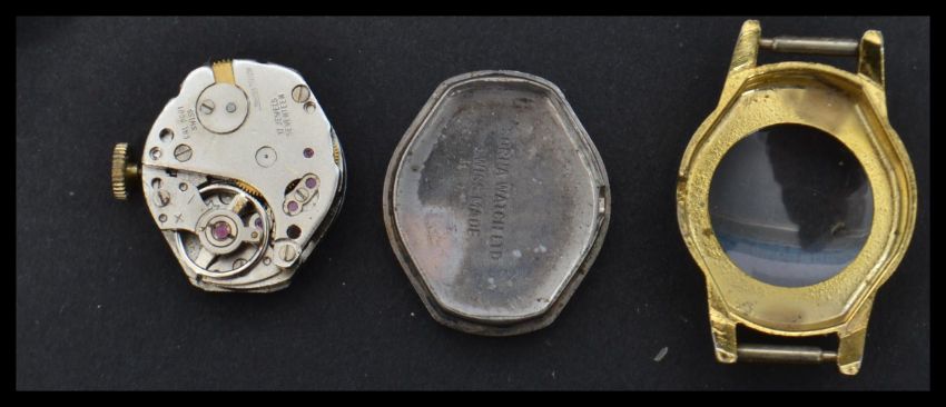 A collection of vintage ladies wrist watches dating from the early 20th Century to include silver examples, Aviation sports watch with original case,  Sorna, Windsor, Newmark, Limit together with a Stratton compact.