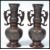 A pair of early 20th century Chinese bronze baluster vases raised on circular bases with scrolled handles. Measures 20 cm high.