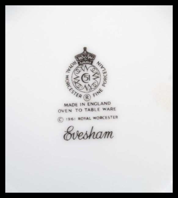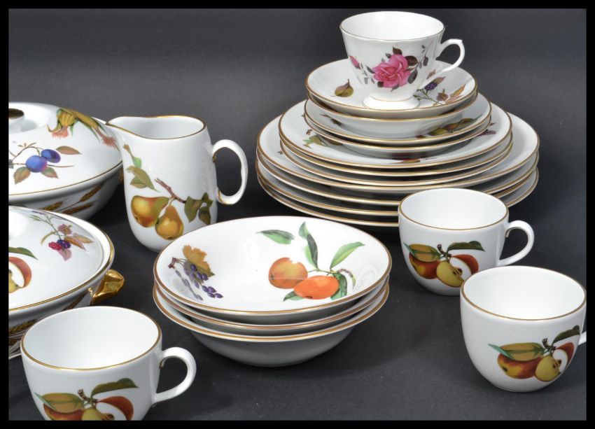 An extensive Royal Worcester part dinner / tea service in the Evesham pattern, consisting of trio's, plates, tureens, teapot etc